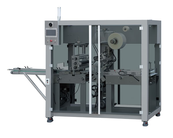 本機適用于各行業(yè)中的單件盒式物品的薄膜自動包裝(帶金拉線)。本機整體機架采用碳鋼噴塑、落地多開安全門結(jié)構(gòu),采用平推式推盒結(jié)構(gòu),更換模具簡單,調(diào)節(jié)距離多處采用手搖式調(diào)節(jié)尺寸,大大節(jié)省換模具時間,固定膜處采用氣漲軸輥固定,使換膜更簡單、快速。