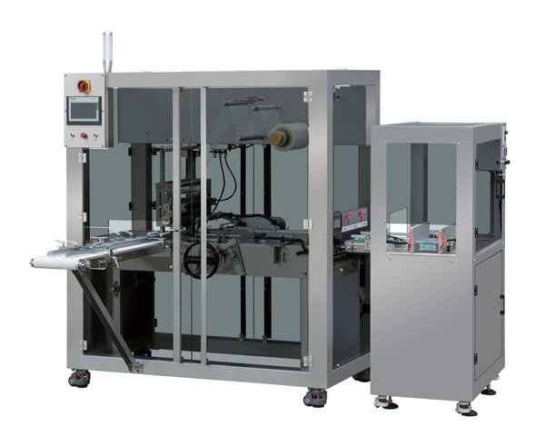 本機(jī)適用于各行業(yè)中的單件盒式物品的薄膜自動包裝(帶金拉線)。本機(jī)整體機(jī)架采用碳鋼噴塑、落地多開安全門結(jié)構(gòu),采用平推式推盒結(jié)構(gòu),更換模具簡單,調(diào)節(jié)距離多處采用手搖式調(diào)節(jié)尺寸,大大節(jié)省換模具時(shí)間,固定膜處采用氣漲軸輥固定,使換膜更簡單、快速。